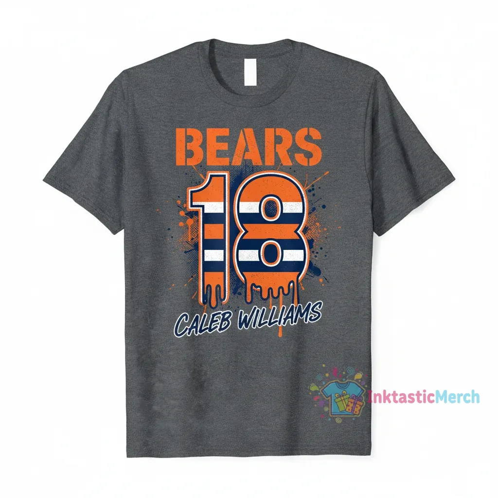 Caleb Williams 18 Chicago Bears is more than just a shirt; it’s a canvas celebrating the spirit of a new era. This design captures the electrifying energy and bold aspirations of a star player stepping onto the field. It’s for the fans who feel the buzz, the hope, and the undeniable charisma that Caleb Williams brings to the game. We wanted to create a piece that feels like a victory lap, a statement of passion for every supporter who believes in the Bears’ future. This artwork embodies that forward momentum and the electric atmosphere of game day.