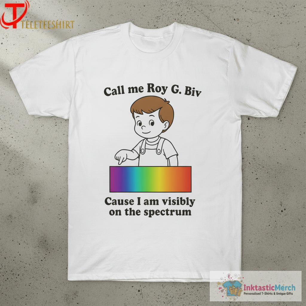 Show off your unique perspective with the “Call My Roy G. Biv Cause I Am Visibly On The Spectrum” T-shirt. This tee isn’t just clothing; it’s a statement piece designed for comfort and conversation. Perfect for anyone who wants to express their individuality and neurodiversity with pride and a touch of wit. Made with high-quality fabric, it offers a soft feel and a durable wear that you’ll reach for again and again.