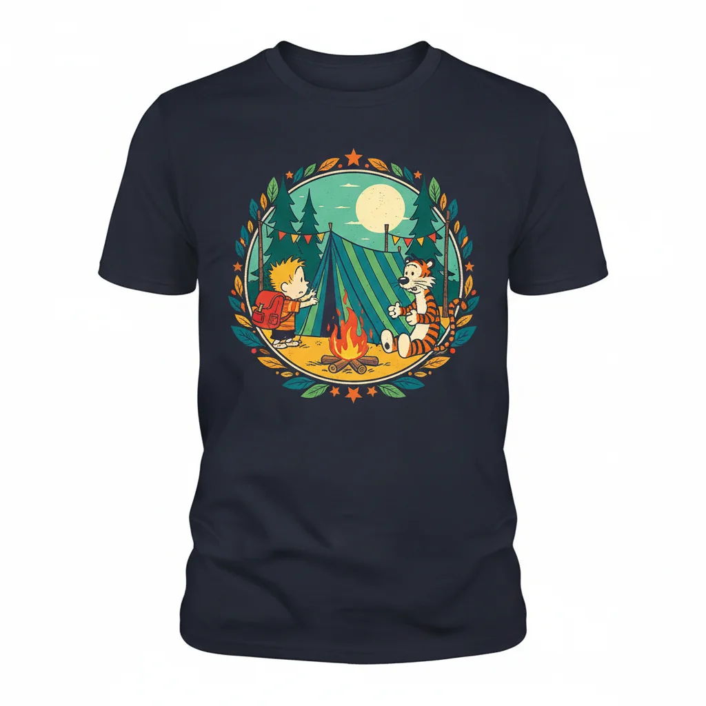 Crafted for comfort and unparalleled style, the Calvin & Hobbes Campout Tee from InktasticMerch offers a luxurious, premium ring-spun cotton feel designed for all-day wear. This tee redefines casual cool with its modern aesthetic and artistic nod to beloved characters, seamlessly integrating into any sophisticated casual wardrobe.