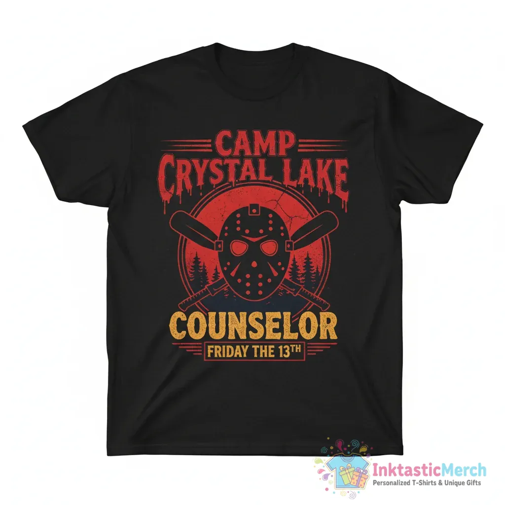 Show off your love for iconic horror with the Camp Crystal Lake Counselor Shirt. Made from premium, ultra-soft cotton with a durable, high-quality print, this tee offers ultimate comfort and lasting vibrancy. Express your fandom in a stylish and casual way, blending pop culture with everyday fashion, and discover more at inktasticmerch.com.