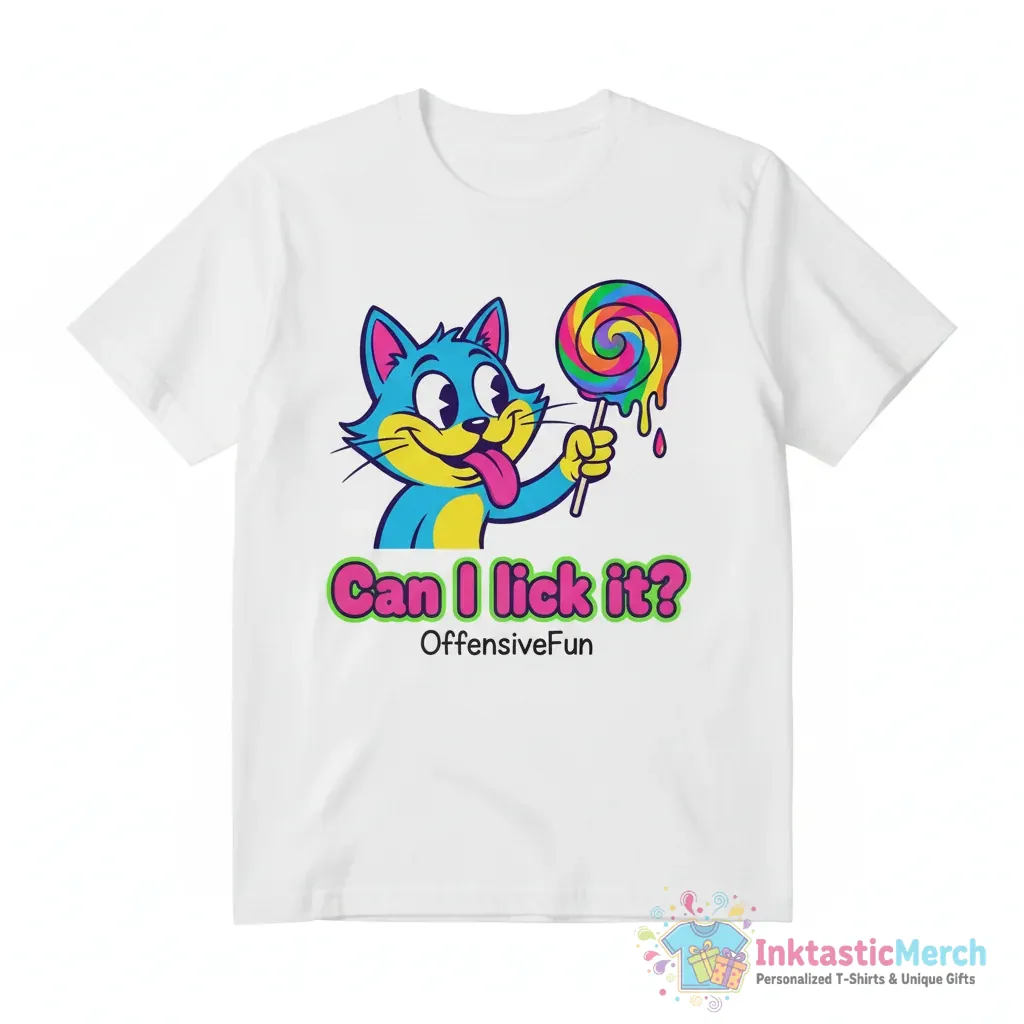 Show off your playful side with the Can I lick it? T-shirt from InktasticMerch! This statement piece is made with super soft, premium quality fabric that feels as good as it looks, ensuring maximum comfort and durability for all-day wear. Its eye-catching design is sure to turn heads and spark conversations, making it the perfect blend of quirky style and everyday comfort.