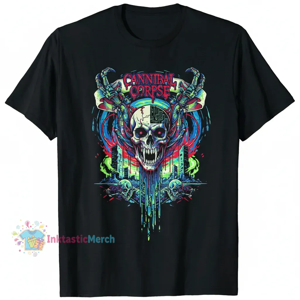Metalheads, concert-goers, fans of death metal, collectors of band merchandise, anyone seeking comfortable and stylish everyday wear, and those who appreciate vintage music aesthetics. This t-shirt is ideal for festivals, casual outings, music listening sessions, or simply expressing your passion for Cannibal Corpse.