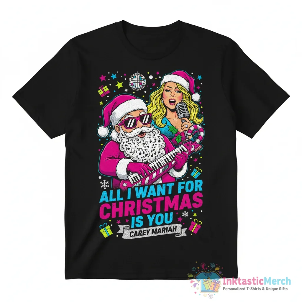 Make this holiday season unforgettable with the Carey Mariah Santa All I Want For Christmas Is You Christmas shirt from InktasticMerch. Crafted from incredibly soft, premium fabric, this festive tee offers exceptional comfort and a durable design, perfect for celebrating the magic of the holidays in style.