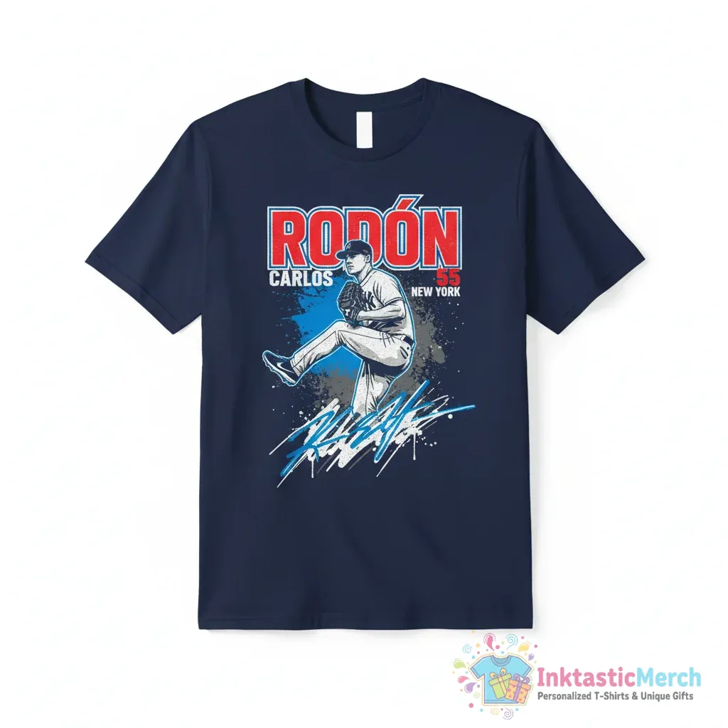 Show your support for the star pitcher with the Carlos Rodón New York Yankees 55 signature shirt from inktasticmerch.com. This premium quality tee celebrates Carlos Rodón and the iconic New York Yankees, crafted for ultimate comfort with ultra-soft, breathable fabric. It’s the perfect way for any fan to showcase their team spirit and admiration for one of baseball’s top talents.