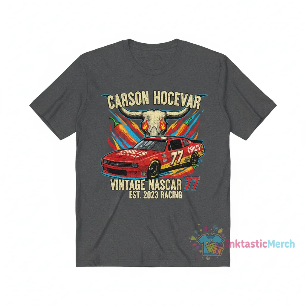 Celebrate the thrill of racing with the Carson Hocevar 77 Chevrolet Chili’s Nascar vintage tee, crafted from incredibly soft, premium cotton for a sought-after vintage feel. This expertly constructed shirt offers durable, high-quality print and a comfortable, lasting fit, making it a wardrobe essential that embodies both style and passion. Discover more at inktasticmerch.com.