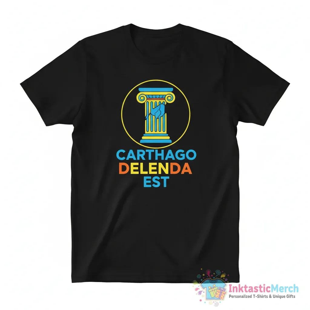 - Eye-catching “Carthago Delenda Est” Latin phrase design.