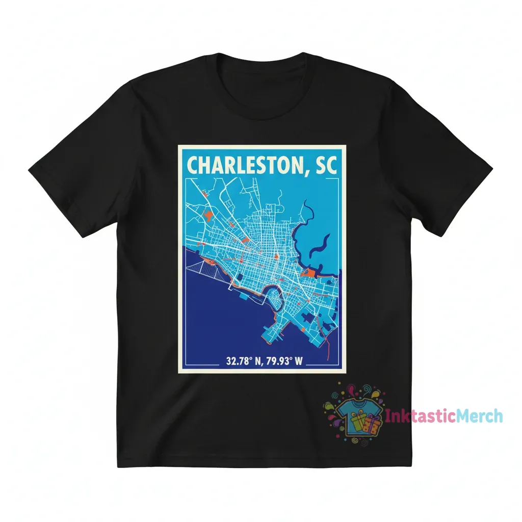 This T-shirt features an elegantly detailed white map of Charleston, rendered with a clean, artistic aesthetic. Each street, landmark, and waterway is meticulously illustrated, transforming a functional map into a captivating piece of graphic art. The minimalist white-on-contrast design evokes a sense of sophisticated nostalgia, perfect for anyone who appreciates the charm and history of Charleston. It’s more than just a map; it’s a conversation starter, a subtle nod to your connection with this beloved Southern gem, and an expression of your unique personality and appreciation for fine design.