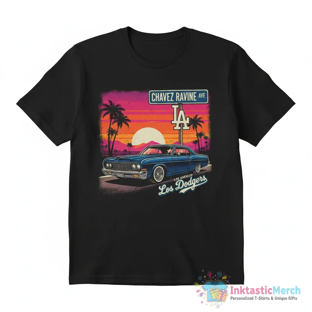 Showcase your passion for Chavez Ravine and the Los Angeles Dodgers with this unique lowrider car graphic tee, crafted from premium, ultra-soft fabric for superior comfort and durability. This statement piece features a high-quality, vibrant print that captures the iconic Los Angeles aesthetic, ensuring it remains a standout in your wardrobe for years to come. Discover more quality fan apparel and express your unique personality by visiting inktasticmerch.com.