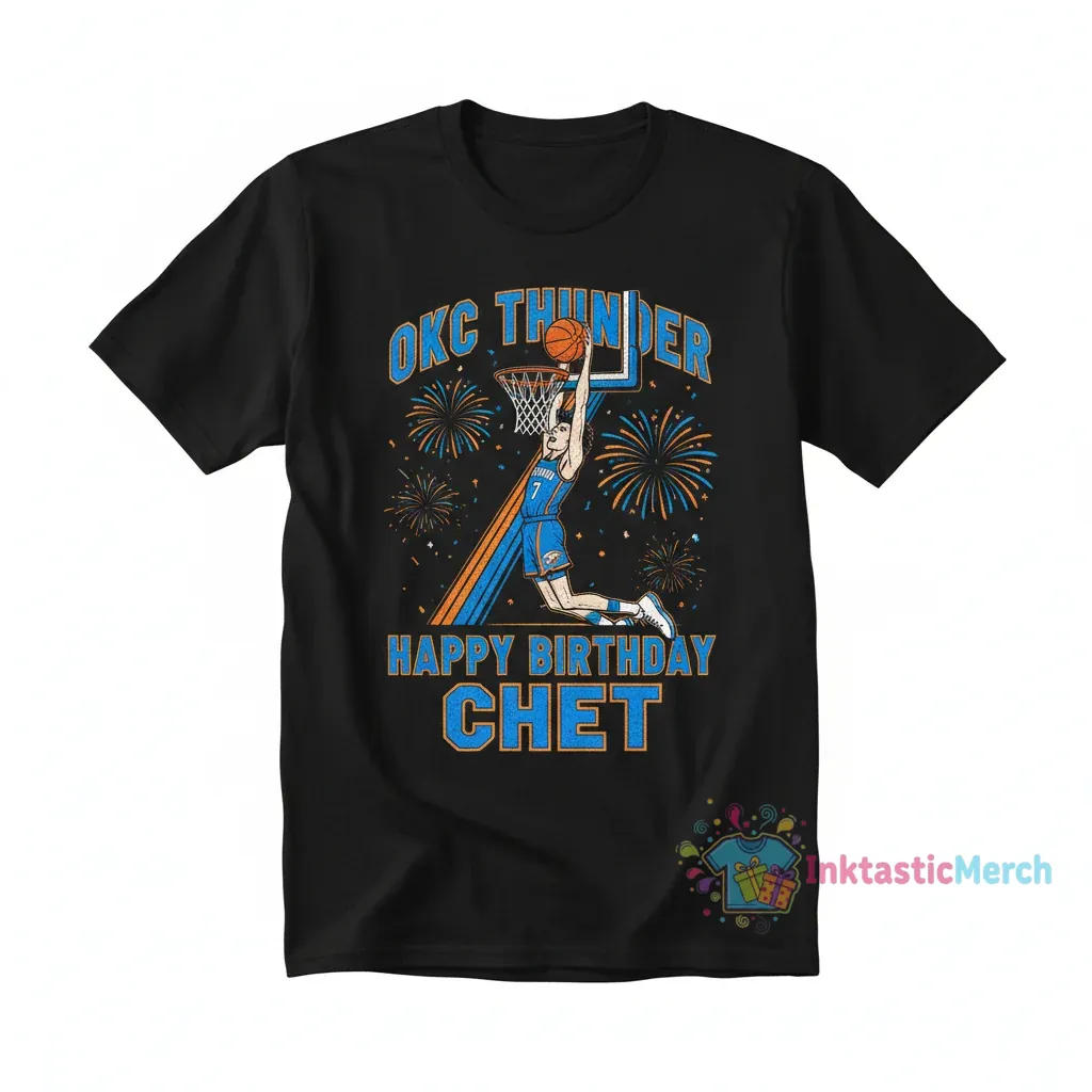 Celebrate in style with this OKC Thunder tee from InktasticMerch, designed for the moment with a minimalist edge nodding to Chet Holmgren’s birthday. Crafted from premium, high-end fabric, this ultra-soft tee offers unmatched softness and feel for effortless cool and a statement piece for the urban landscape.