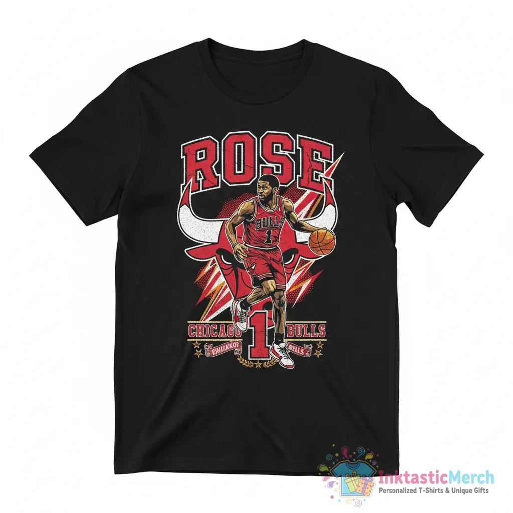 Show your love for basketball legend Derrick Rose with this iconic Chicago Bulls graphic vintage shirt. Crafted from ultra-soft fabric for all-day comfort and featuring a high-quality, lasting design, this tee offers a relaxed unisex fit perfect for any body type. Explore more fan favorites and unique apparel at inktasticmerch.com.