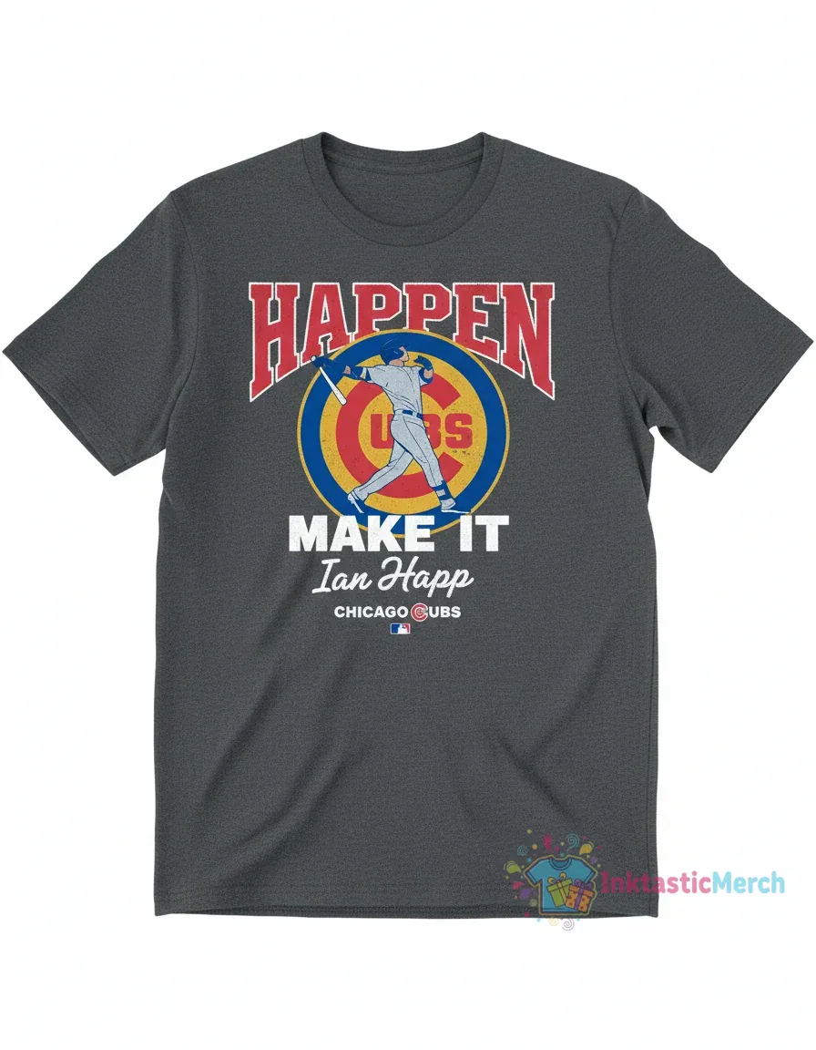 Show your unwavering support for the Chicago Cubs and star player Ian Happ with this exclusive ‘Make It Happen’ signature t-shirt. This premium tee is designed for dedicated fans who want to celebrate Ian Happ’s impactful presence on the field and his iconic slogan. Perfect for game days, casual wear, or as a standout piece in your baseball memorabilia collection, this shirt embodies the spirit of Cubs baseball and Ian Happ’s journey. It’s more than just apparel; it’s a statement of fandom and appreciation for one of the team’s key players.