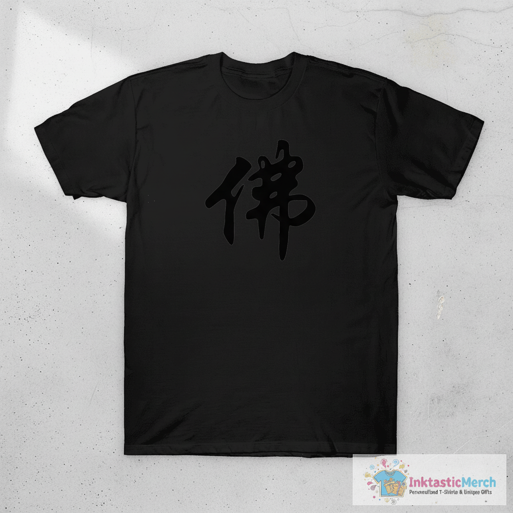 Bring your style to life with the Chinese sign for BUDDHA – solid black T-Shirt today!