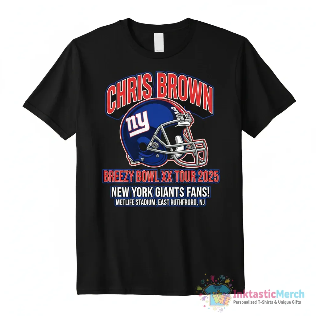 - Unique Chris Brown Breezy Bowl XX Tour 2025 and New York Giants helmet graphic