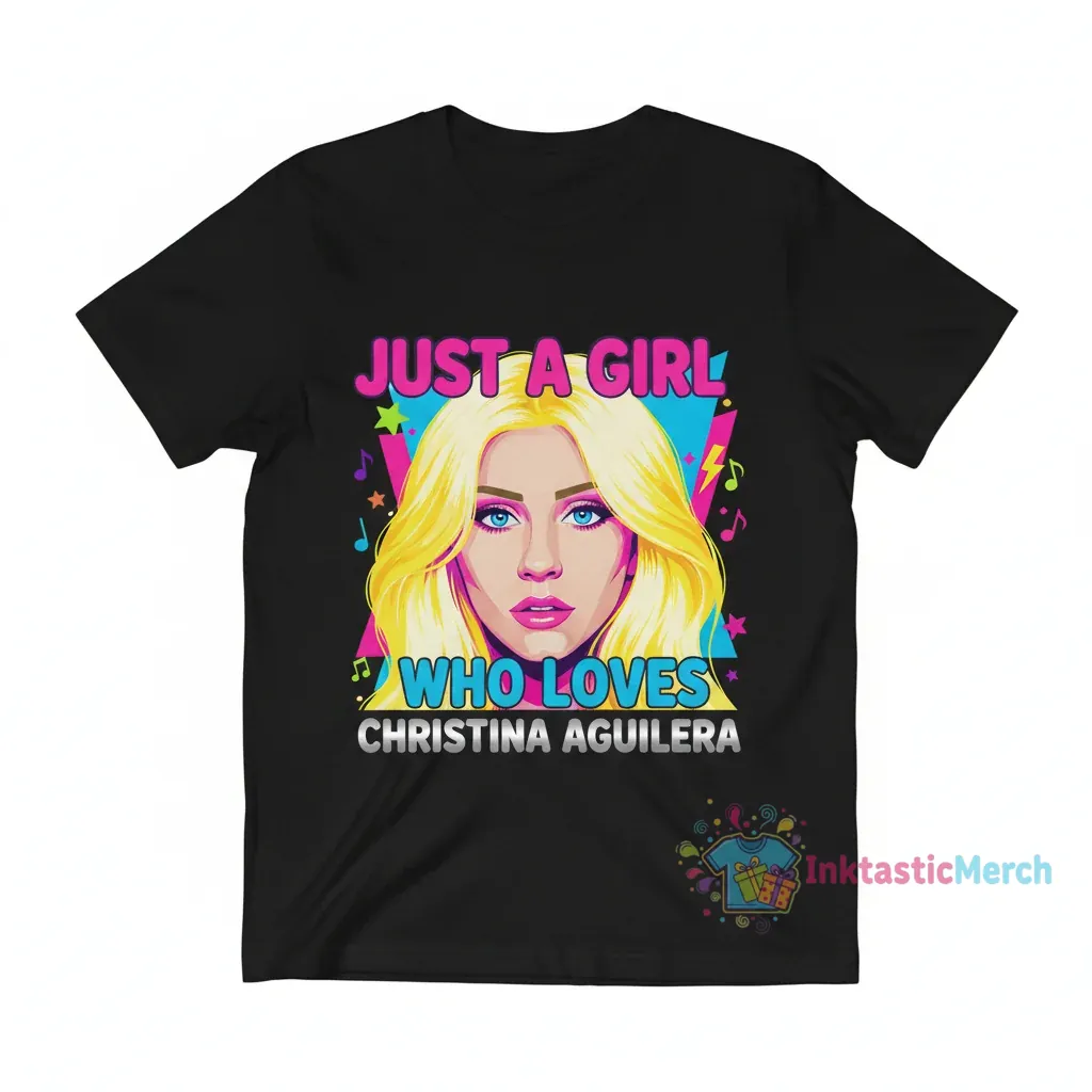 This “Just A Girl Who Loves Christina Aguilera” t-shirt is the ultimate fan apparel for any devoted follower of the iconic pop superstar. Celebrate your love for Christina Aguilera with this stylish and comfortable graphic tee, perfect for concerts, casual outings, or everyday wear. Designed for fans who appreciate quality and iconic music, this t-shirt makes a statement about your passion for one of music’s most influential artists. Show your admiration for Christina’s timeless hits and incredible stage presence with this must-have addition to your wardrobe.