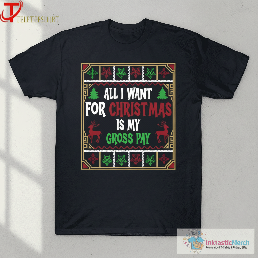 Bring your style to life with the Christmas All I Want Is My Gross Pay Ugly Holiday T-Shirt today!