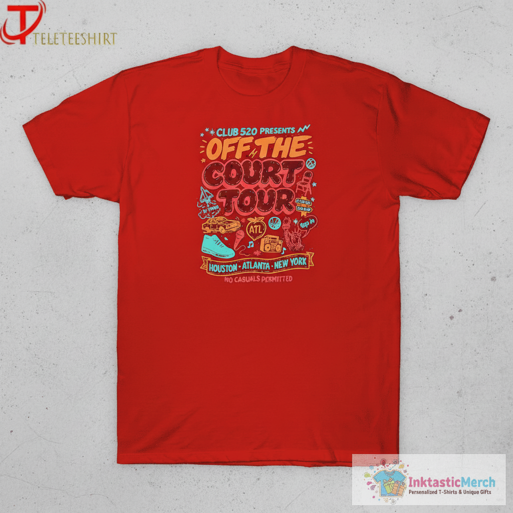 Step up your game with the Club 520 Off The Court Tour 2025 No Casuals Permitted T-shirt from inktasticmerch.com. Designed for those who appreciate unique style and a relaxed feel, this tee is crafted from a premium, ultra-soft cotton blend for maximum comfort. The high-quality print ensures the cool graphic lasts wash after wash, while the relaxed unisex fit offers effortless style.