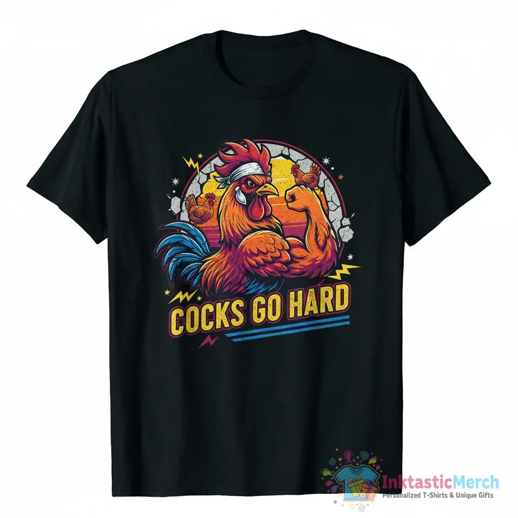 Show off your bold style with the Cocks Go Hard chickens graphic shirt from InktasticMerch. This premium quality tee features a unique and playful chicken design, crafted from super-soft, high-quality fabric for superior comfort and durability. Its classic unisex fit and vibrant graphic ensure you’ll make a statement and express your personality with fun and confidence.