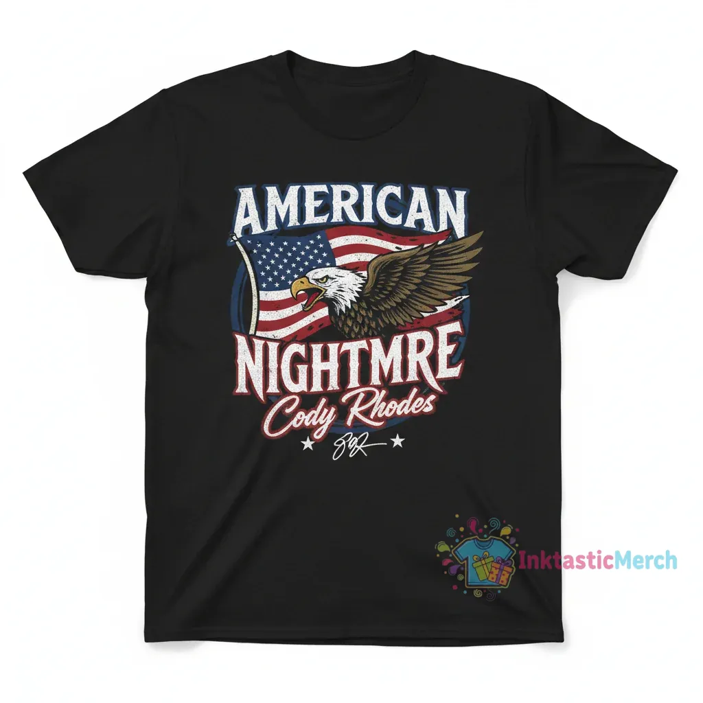 To keep your Cody Rhodes American Nightmare signature vintage shirt looking its best, machine wash cold with like colors and tumble dry low. For best results, avoid ironing directly on the graphic. This versatile tee is perfect for casual wear, layering, or as a statement piece for wrestling-themed events. Pair it with jeans for a classic look, or wear it under a jacket for added warmth and style. It makes an ideal gift for any wrestling enthusiast who appreciates iconic memorabilia and comfortable, high-quality apparel.