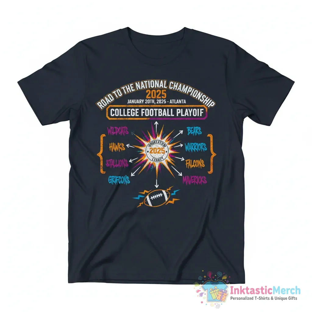 Get ready for the biggest game of the year with the College Football Playoff 2025 Bracket shirt from InktasticMerch. This tee is designed for comfort and style, making it ideal for game days, watch parties, or just everyday wear, offering a perfect blend of fan pride and everyday comfort.