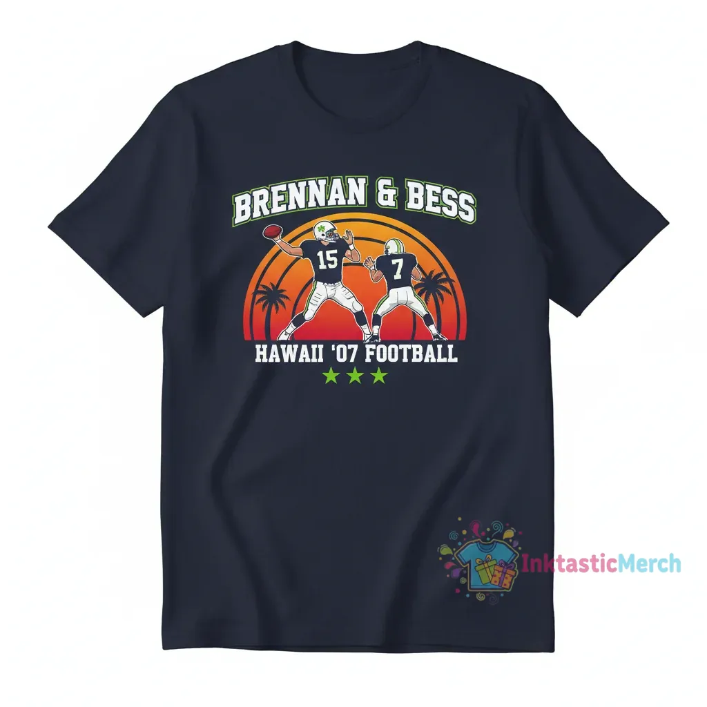 Relive the glory days of the 2007 Hawaii Rainbow Warriors with this awesome Colt Brennan and Davone Bess football t-shirt! This tee is a must-have for any fan who remembers that incredible season. It’s more than just a shirt; it’s a piece of football history you can wear. Show your pride and celebrate the electrifying plays of Brennan and Bess.
