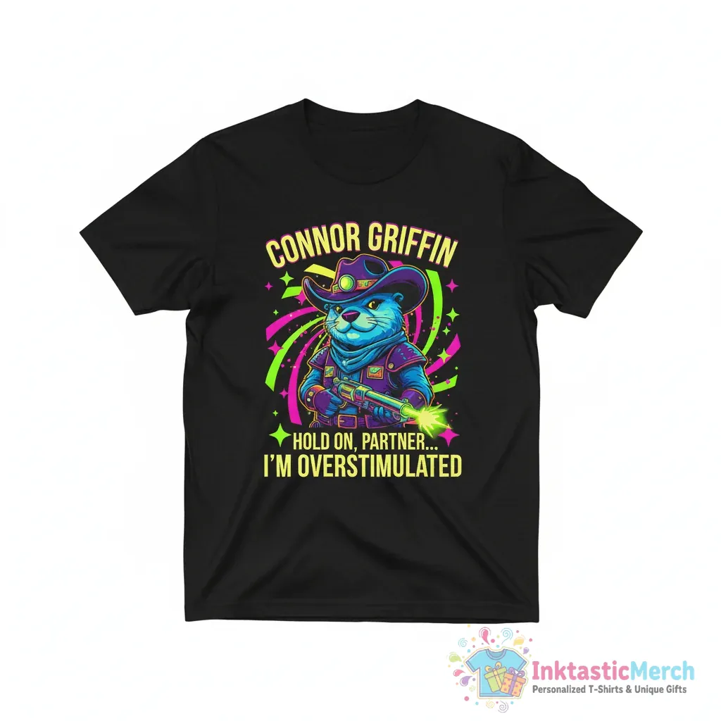 - Unique “Connor Griffin Hold On Partner I’m Overstimulated” graphic design.