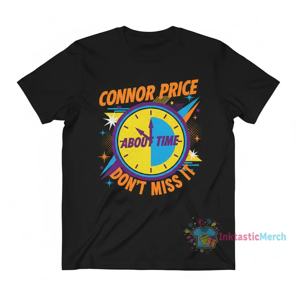 Introducing the must-have Connor Price ‘About Time’ T-Shirt – the ultimate statement piece you’ve been waiting for. Designed for fans who appreciate quality and style, this shirt isn’t just apparel; it’s an experience. Forget flimsy tees that lose their shape after a few washes. We’ve meticulously crafted this shirt to be a lasting addition to your wardrobe, ensuring you look and feel your best, no matter where life takes you. Don’t just wear a shirt, wear a conversation starter. This is your chance to own a piece of exclusive fan gear that perfectly captures the ‘About Time’ vibe.