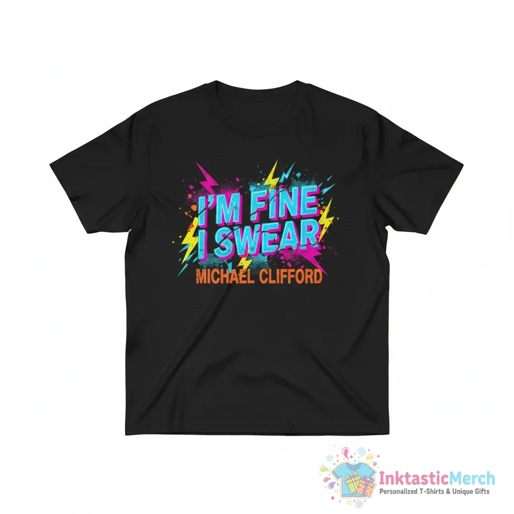 Show off your love for Michael Clifford with this “Cool I’m Fine I Swear” graphic tee, crafted for ultimate comfort and style. This premium quality t-shirt features an eye-catching design with bold lettering, making it a must-have for any fan. Discover more from InktasticMerch, where this vibrant statement tee allows you to express yourself comfortably.