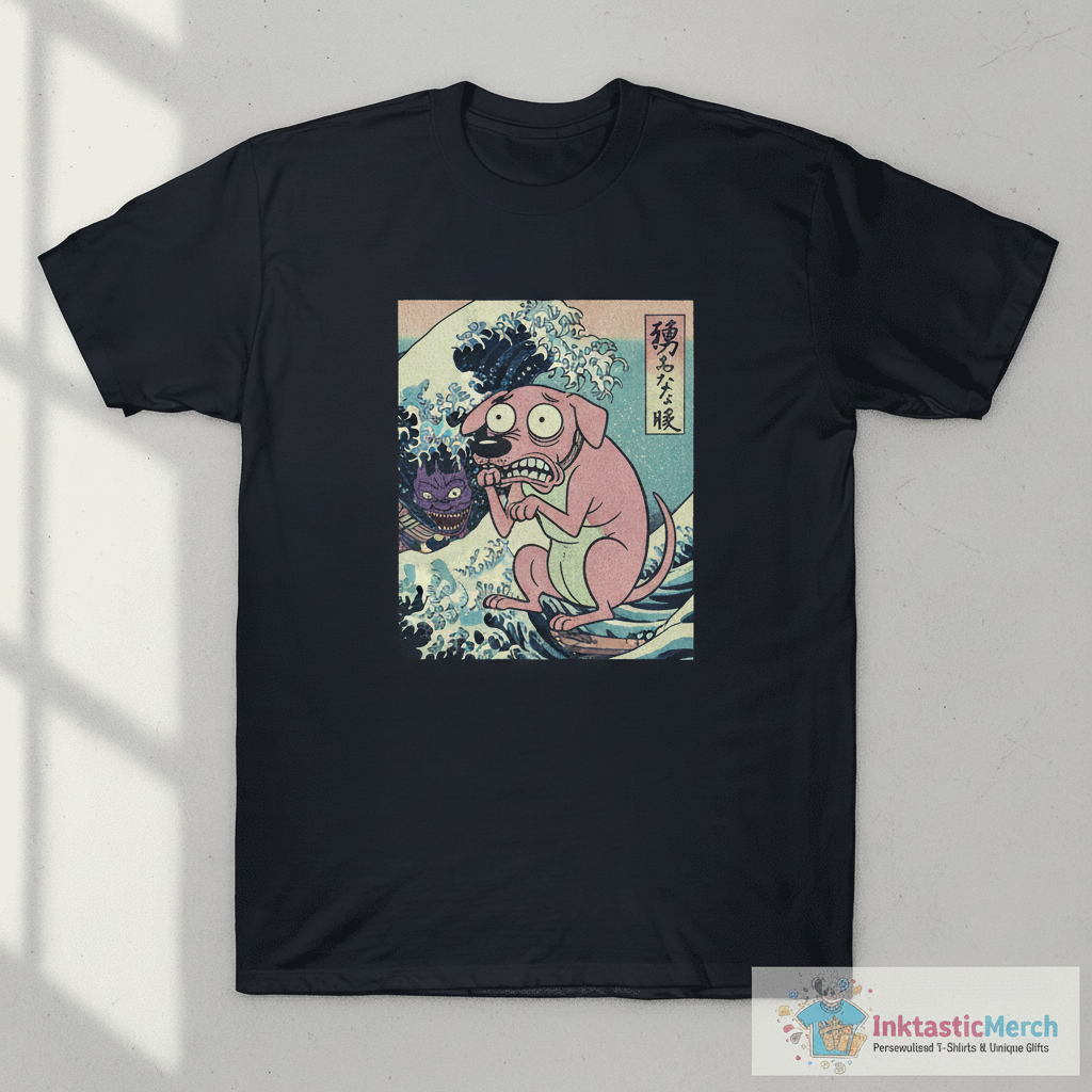 Fans of Courage the Cowardly Dog, cartoon enthusiasts, nostalgic souls, casual everyday wear, movie nights, comic conventions, or as a unique gift for friends and family. It’s great for anyone who loves comfortable, stylish tees with a fun story behind them.