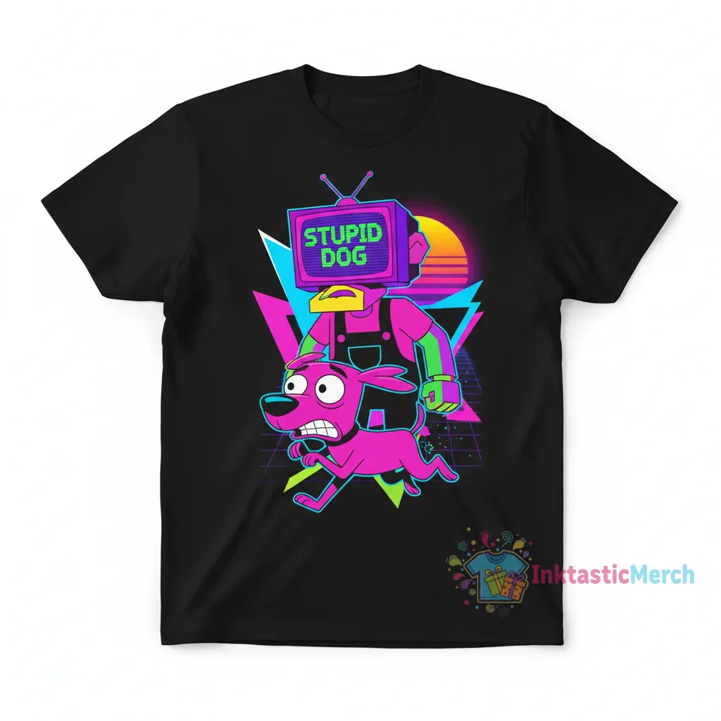 Discover the ultimate fan apparel with this Cowardly Dog and Eustace Bagge Stupid Dog T-Shirt, crafted for comfort and style from 100% ring-spun cotton with a modern retail fit. This eye-catching and conversation-starting shirt is an ideal addition to any casual wardrobe, making a statement of your love for classic cartoon humor. Explore more unique designs at inktasticmerch.com.