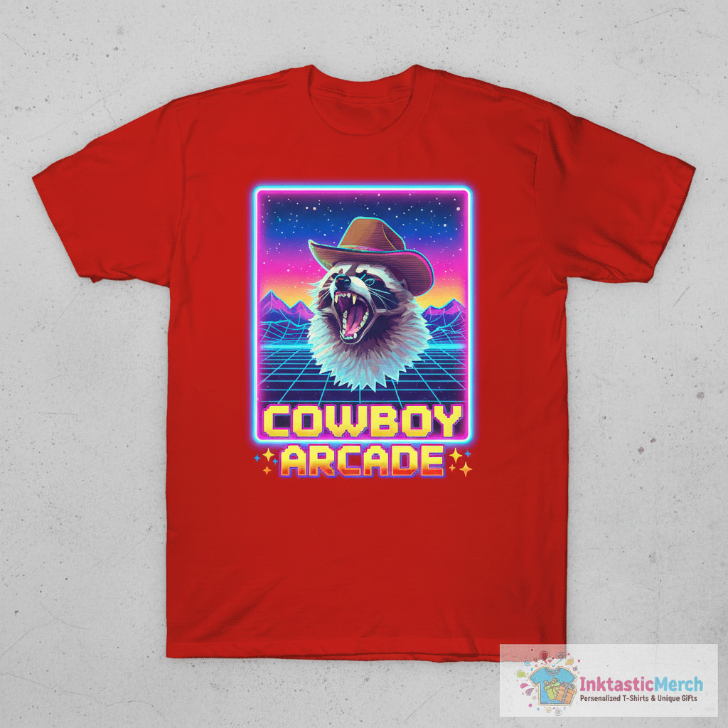 Show off your wild side with the unique cowboy raccoon word art T-Shirt from InktasticMerch. This tee features eye-catching artwork and is crafted from ultra-soft, high-quality material built to last. Express yourself with this one-of-a-kind graphic tee, designed for comfort and everyday wear.