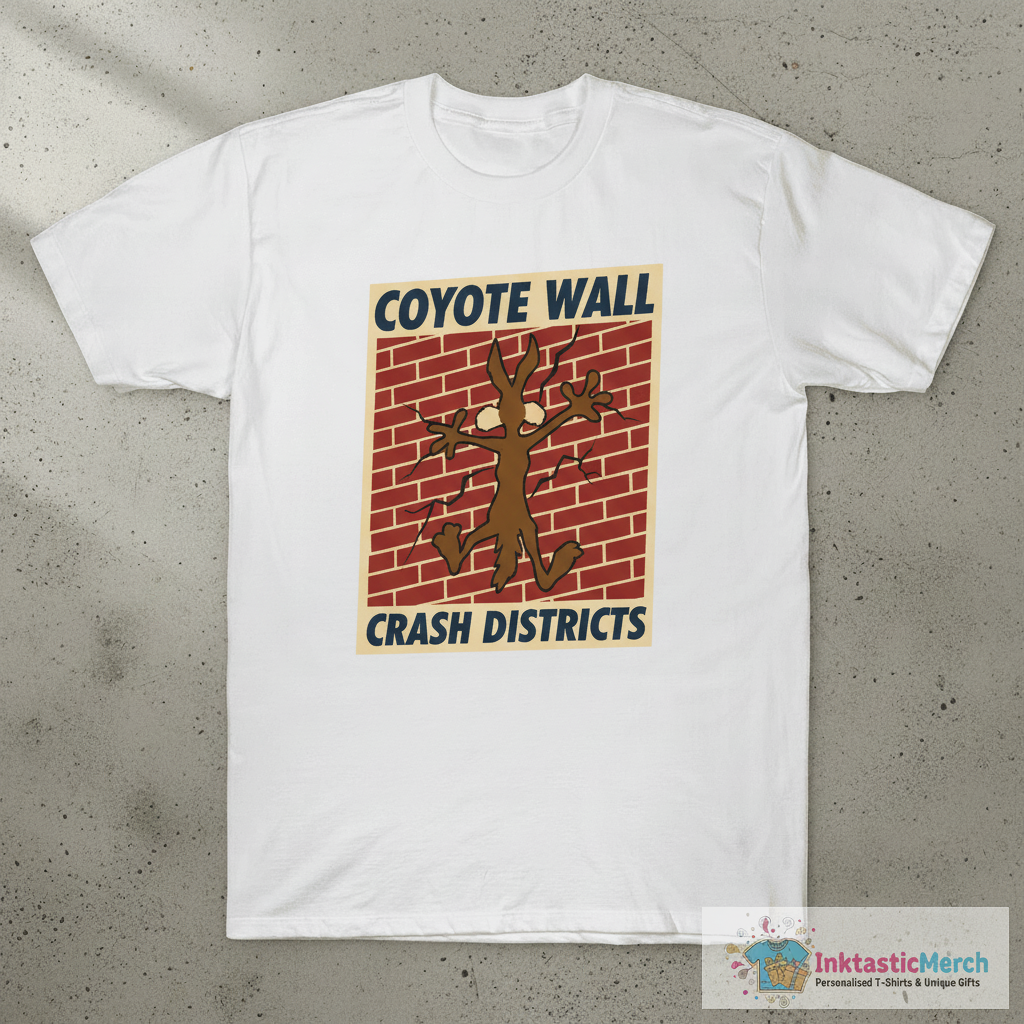 Unleash your wild side with the Coyote Wall Crash Dks T-Shirt from InktasticMerch. This tee features a unique and eye-catching cartoon design made for comfort and style, printed with high-quality inks that last. Its relaxed, unisex fit is designed to flatter everyone, offering a comfortable and stylish silhouette perfect for expressing your personality.