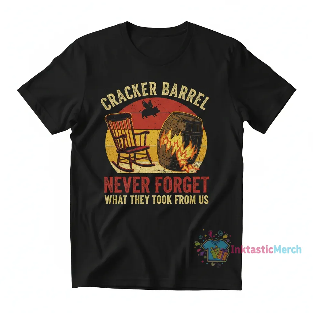 Make a statement with the Cracker Barrel Never Forget What They Took From Us shirt, designed for comfort and style by InktasticMerch. Crafted from premium, soft, and breathable fabric, this tee ensures lasting comfort and a vibrant, durable print that stays sharp wash after wash. Its unisex fit and versatile style make it a perfect conversation starter for your casual wardrobe.