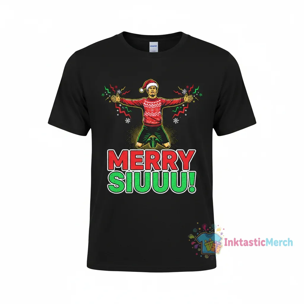Score a festive touchdown this holiday season with the iconic Cristiano Ronaldo Siu Christmas Jumper shirt from InktasticMerch. This shirt is crafted with incredibly soft fabric and features a high-quality print, ensuring vibrant design that stays looking great, wash after wash. Celebrate the holidays with the spirit of a champion in this comfortable and stylish statement piece.