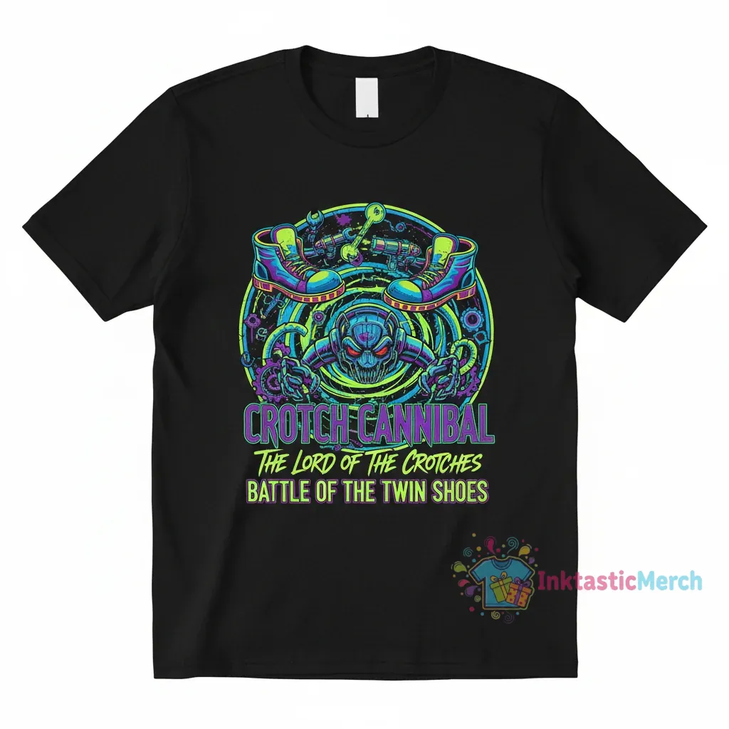 Show off your unique style with the iconic Crotch Cannibal The Lord of the Crotches Battle of The Twin Shoes shirt. This tee is perfect for anyone who loves bold designs and wants to make a statement. Inspired by a legendary battle, this shirt captures a wild and unforgettable vibe that’s sure to turn heads.