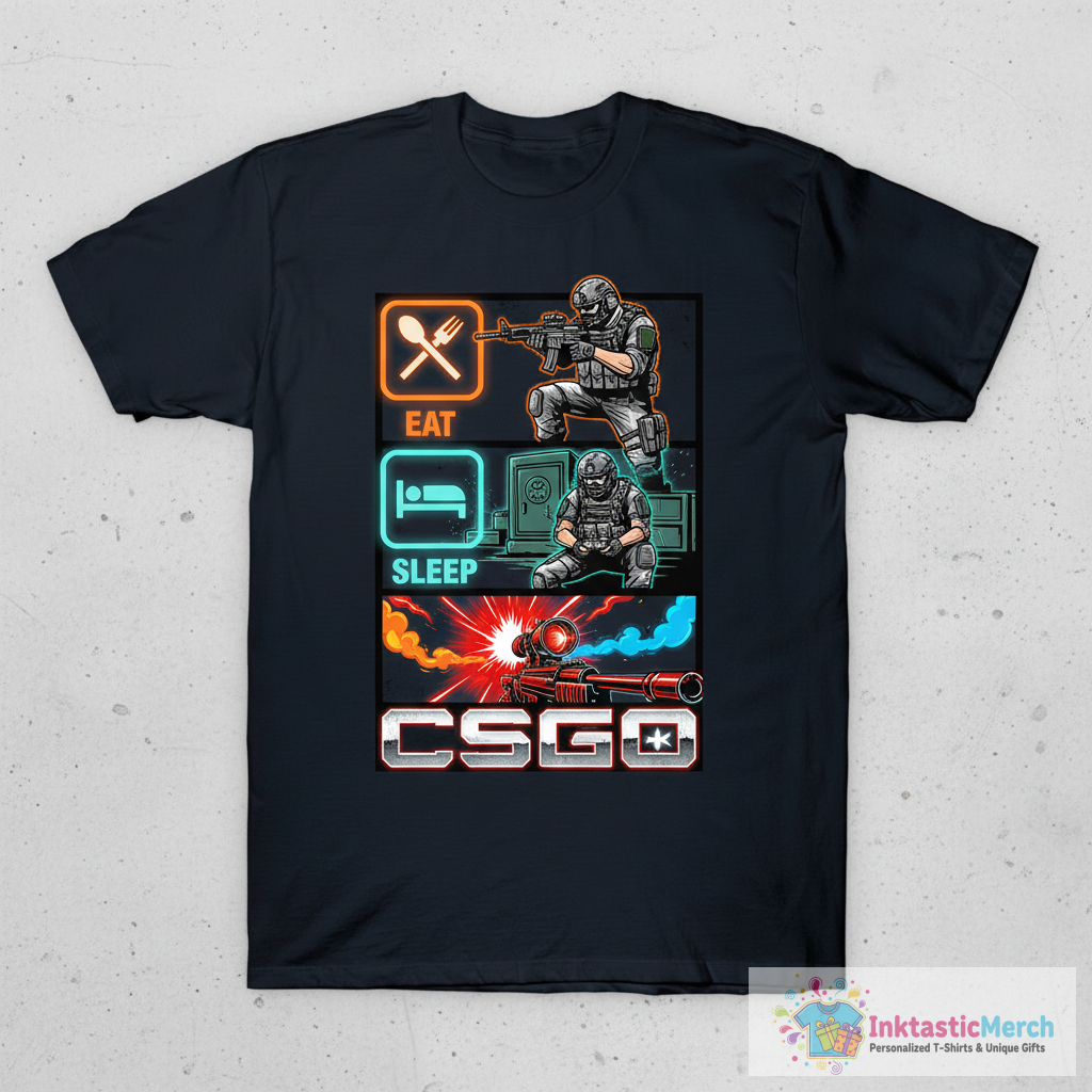 The CSGO Eat Sleep Headshot Gaming Tee T-Shirt is more than just a piece of apparel; it’s a declaration of your passion for gaming. Made for the dedicated player, this tee combines style, comfort, and a touch of gamer pride into one perfect package. Whether you’re an avid gamer or a casual player, this t-shirt is designed to express your love for gaming every time you wear it.