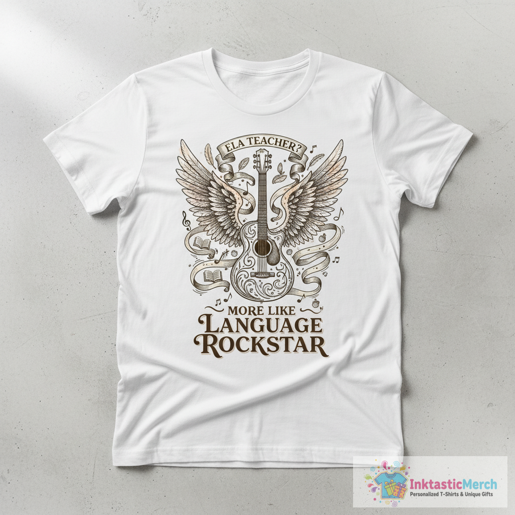 Stand out in the classroom or at literary events with our English LANGUAGE ROCKSTAR T-Shirt. Celebrate your teaching journey and inspire your students by donning this fashionable attire. Join the community of educators who wear their passion on their sleeves, quite literally!