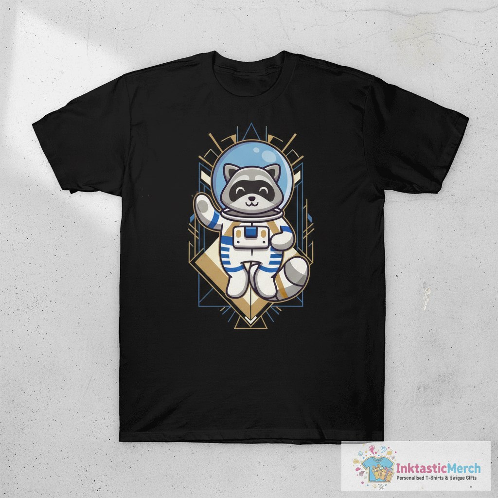 Animal lovers, raccoon fans, space exploration enthusiasts, stargazers, and anyone who appreciates cute and quirky designs. This t-shirt is ideal for casual outings, weekend wear, themed parties, or as a thoughtful gift for friends and family. It’s a versatile addition to any collection, easily paired with jeans, shorts, or your favorite loungewear.