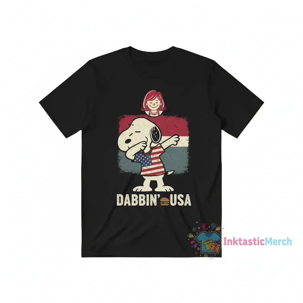 Showcase your patriotic spirit with the Dabbing Snoopy Wendy’s USA Flag Shirt, a perfect blend of humor and national pride crafted from 100% ring-spun cotton for exceptional softness and breathability. Designed for comfort and longevity, this tee features side-seamed construction to maintain its shape wash after wash, embodying the quality you can expect from inktasticmerch.com. Discover more unique designs at inktasticmerch.com.