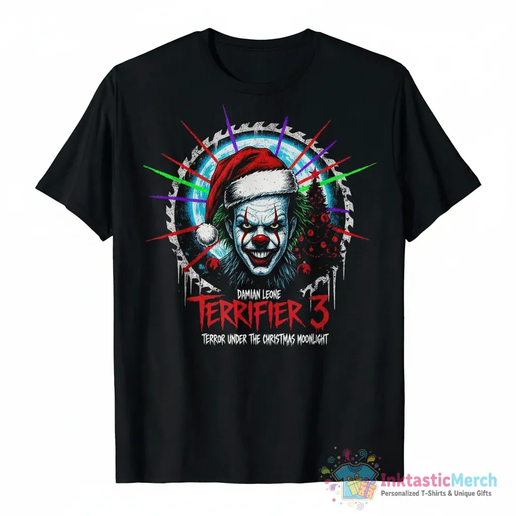 Unleash your inner horror fan with the Damien Leone Terrifier 3 Art the Clown shirt. This tee captures the chilling essence of Christmas moonlight terror, featuring the iconic Art the Clown. It’s more than just a shirt; it’s a statement piece for anyone who loves the thrill of the Terrifier franchise. Get ready to turn heads and spark conversations with this unique design.