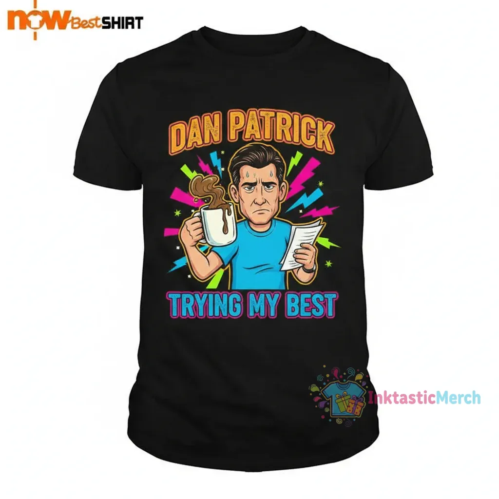 Showcase your dedication with the Dan Patrick Trying My Best Shirt, a premium quality graphic tee crafted for comfort and style from 100% ring-spun cotton for exceptional softness and breathability. This t-shirt features a modern retail fit and durable print, ensuring it’s an ideal addition to any casual wardrobe, available from inktasticmerch.com.
