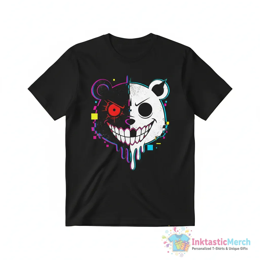 Show off your love for the iconic Danganronpa series with this awesome Danganronpa Monokuma Face Graphic T-Shirt. This tee features a bold and instantly recognizable design of Monokuma, the manipulative teddy bear antagonist. Perfect for any fan, this shirt lets you wear your fandom with pride. It’s made for everyday wear, combining cool style with ultimate comfort. Get ready to make a statement wherever you go with this must-have piece for your Danganronpa collection.