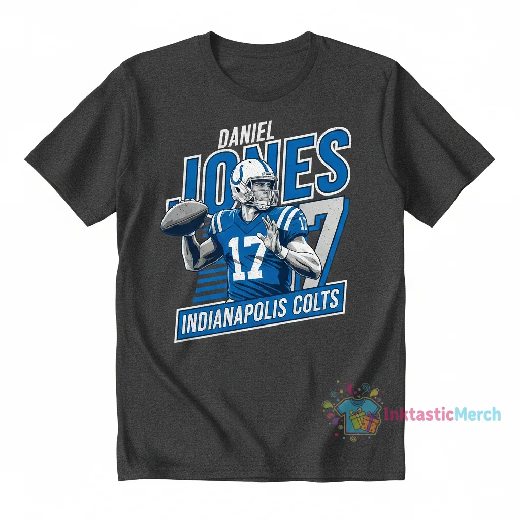 Show your unwavering support for the Indianapolis Colts and star player Daniel Jones with this iconic Name & Number T-shirt. Designed for maximum comfort and durability by InktasticMerch, this tee features a soft, breathable fabric and a vibrant, long-lasting print of Daniel Jones’ name and official jersey number 17, perfect for game days or casual wear.