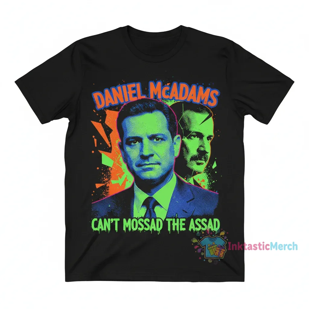 Daniel Mcadams’ ‘Mossad the Assad’ shirt is more than just fabric; it’s a wearable piece of art that sparks conversation and embodies a bold spirit. This design emerged from a moment of creative clarity, capturing a sentiment that resonates with those who aren’t afraid to stand out. It’s for the thinkers, the doers, and the dreamers who appreciate art that makes a statement. This original artwork is printed with meticulous care, ensuring every detail is brought to life, creating a garment that feels as powerful as its message.
