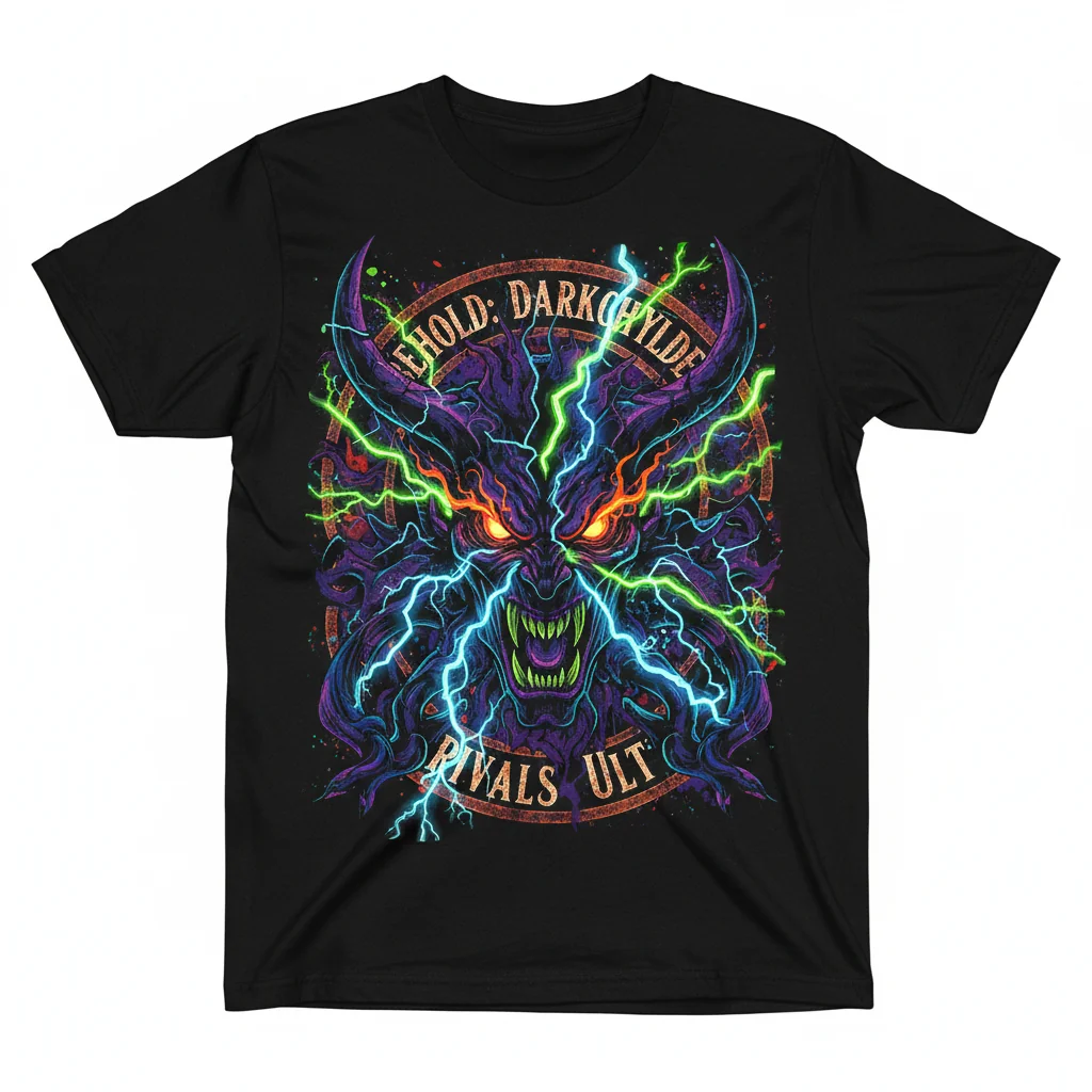 Celebrate the enthralling world of Darkchylde with this essential graphic tee. Featuring a captivating design inspired by the Rivals Ult series, this T-shirt is more than just apparel—it’s a statement. Its versatile design makes it suitable for layering under jackets, pairing with jeans, or simply enjoying as a standalone piece. Designed to resonate with fans of graphic novels and high-quality casual wear, this shirt is an indispensable addition to any wardrobe.
