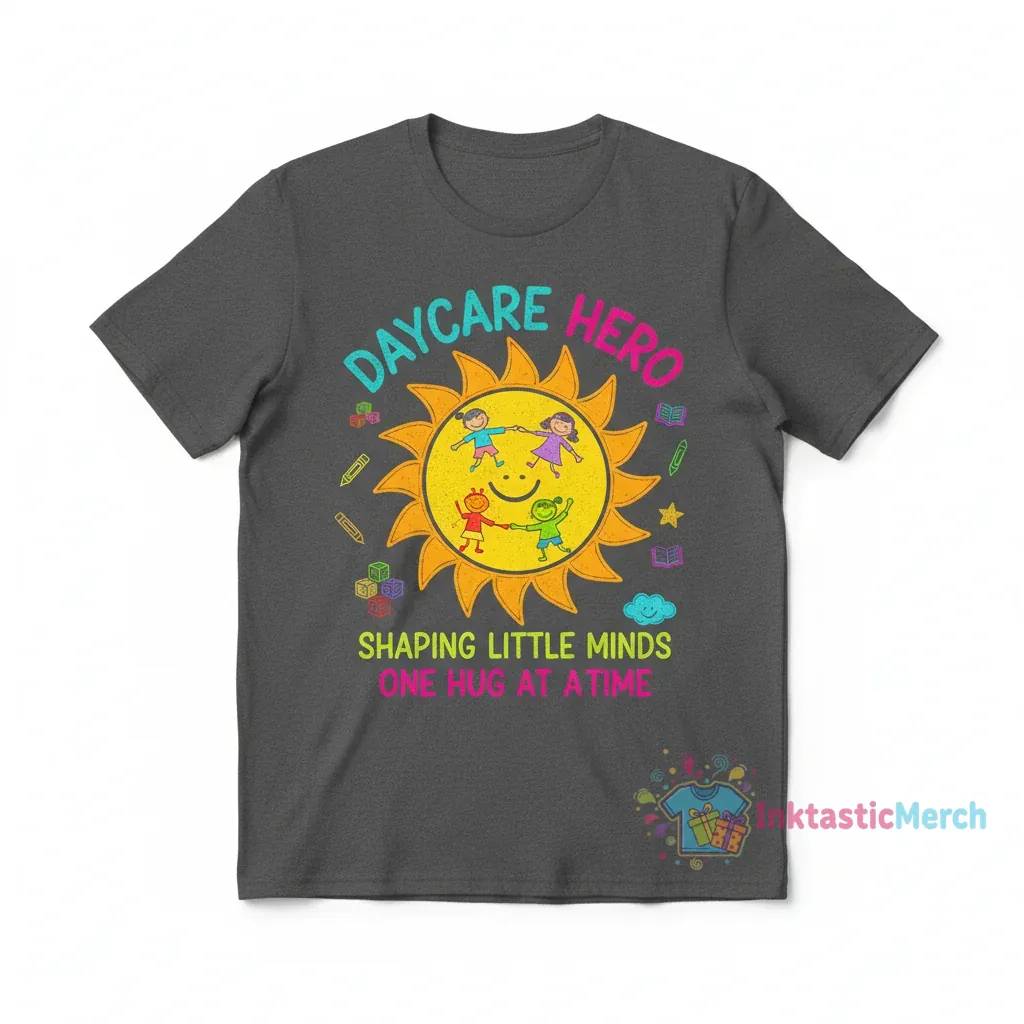 Celebrate the dedication of daycare providers, childcare professionals, and pre-k teachers with this essential t-shirt from InktasticMerch. Crafted for comfort and durability with an ultra-soft, premium cotton blend, this tee features a unique design that honors the vital role these educators play. Its high-quality fabric and classic unisex fit ensure it’s a meaningful and comfortable choice for everyday wear or a special gift.