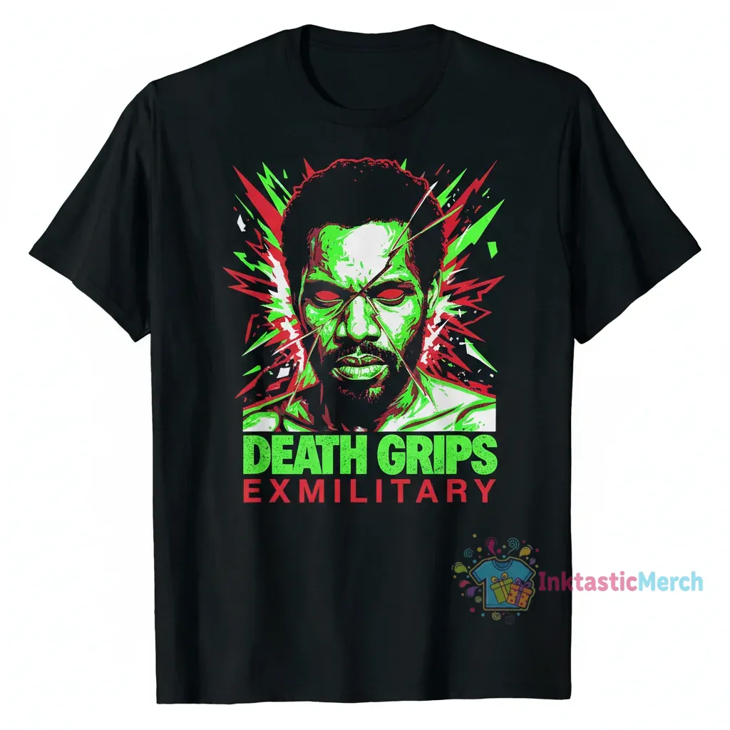 Crafted from 100% premium ring-spun cotton, this heavyweight Death Grips Exmilitary T-Shirt offers exceptional softness and breathability for all-day comfort and longevity. Designed with a retail fit and side-seamed construction for superior durability, this tee from InktasticMerch provides a substantial feel and a modern silhouette, making it a bold way to express your musical taste.