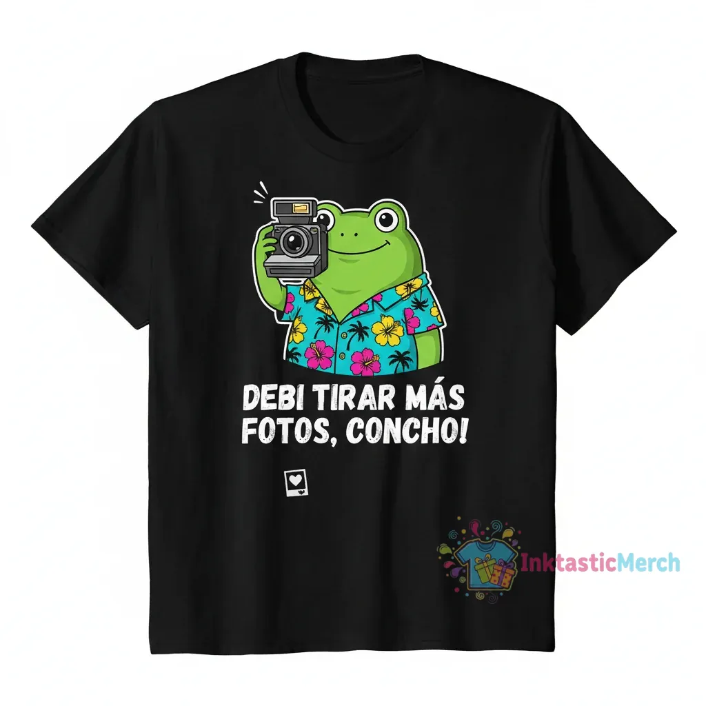 Capture more memories with the Debi Tirar Mas Fotos Concho Frog T-Shirt, a unique and stylish addition to your wardrobe from InktasticMerch. Made with high-quality, durable fabric, this shirt offers exceptional comfort and a vibrant lifestyle vibe, making it perfect for anyone who loves photography, nature, or simply wants a fun and conversation-starting piece of apparel.
