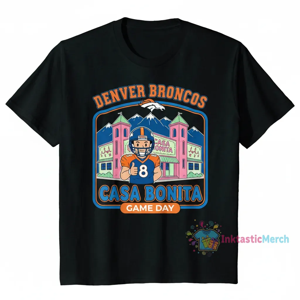 Show your Denver Broncos pride with the officially licensed Denver Broncos Casa Bonitto Broncos Game Day shirt, a perfect way to celebrate every touchdown and victory. Designed for true fans, it combines team spirit with everyday comfort, letting you represent your favorite NFL team in style. You’ll absolutely love the soft feel and vibrant design of this Denver Broncos shirt, crafted from premium fabric and featuring an eye-catching Casa Bonitto-inspired graphic. This isn’t just a t-shirt; it’s a statement piece for any devoted Broncos fan from InktasticMerch.