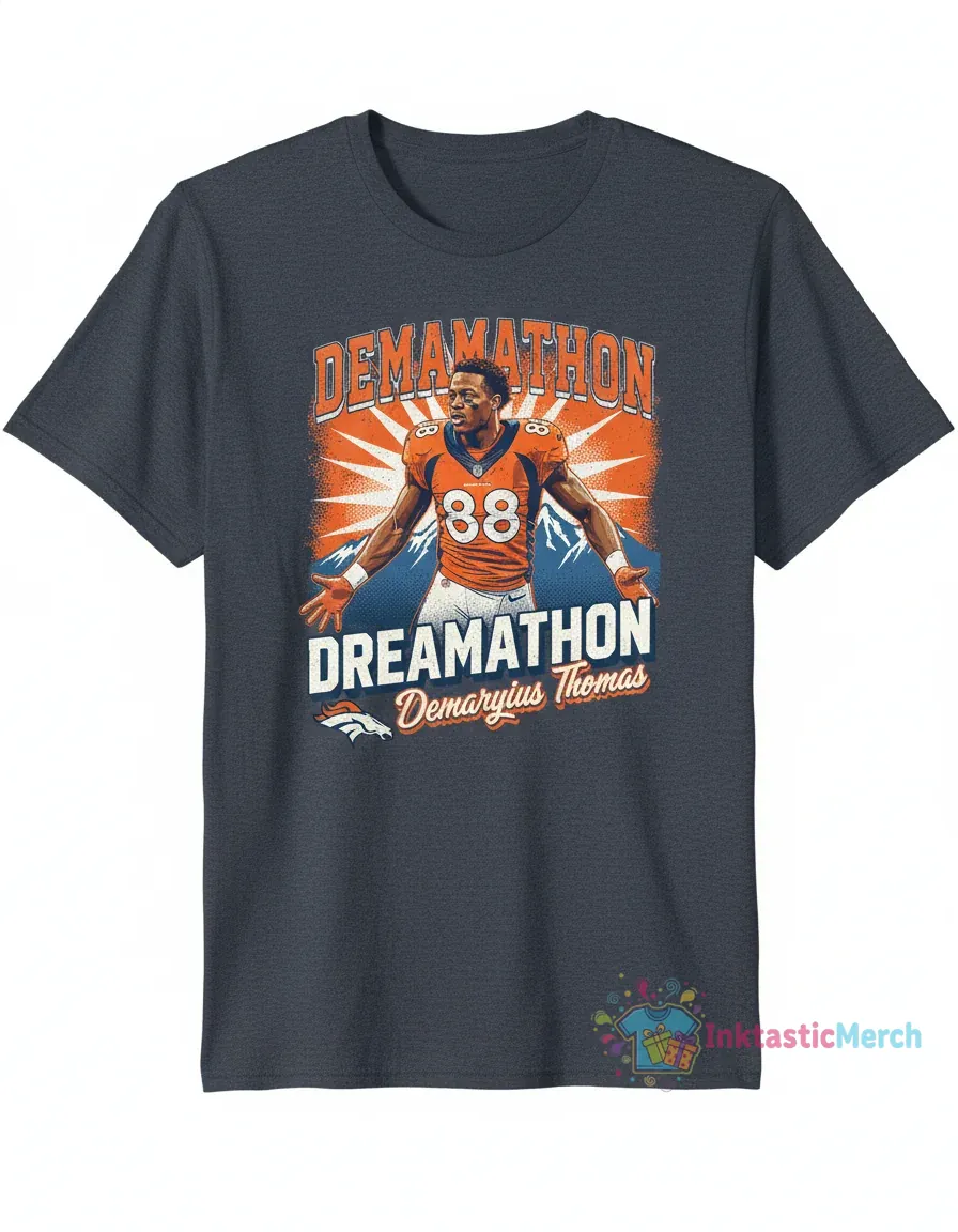 This Denver Broncos Demaryius Thomas Dreamathon graphic tee, crafted from premium, ultra-soft cotton, offers unmatched softness and all-day comfort, embodying a modern aesthetic for the ultimate fan. Discover more quality apparel and fan gear at inktasticmerch.com.
