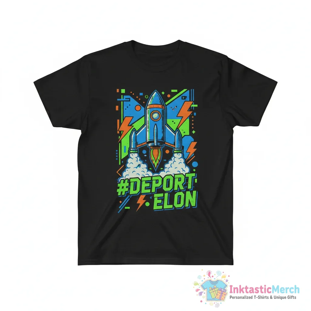 Show your love for innovation and a touch of humor with the DEPORT ELON T-shirt. Crafted for ultimate comfort from incredibly soft, high-quality fabric, this premium tee is perfect for any casual wardrobe. Get ready to make a statement and spark conversations with this must-have shirt from InktasticMerch.
